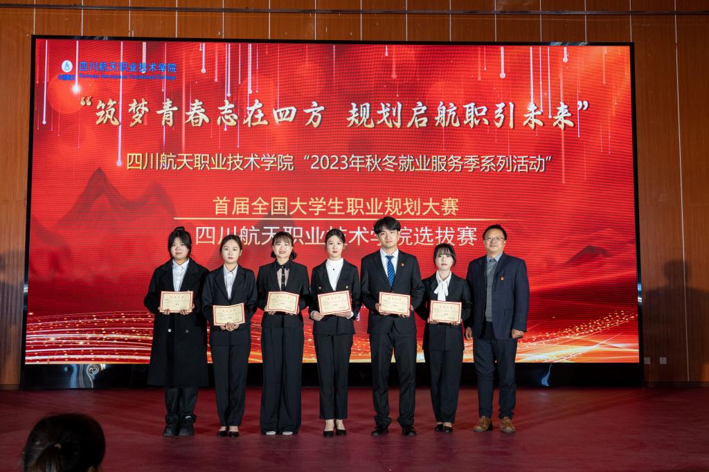 为贯彻落实党中央、国务院关于高校毕业生就业工作的决策部署,加强学生生涯教育和就业指导,增强学生的职业规划意识,提升学生的职业规划能力,促进高校毕业生高质量充分就业,根据《教育部关于举办首届全国大学生职业规划大赛的通知》(教学函〔2023〕1号)和《四川省教育厅四川省人力资源和社会保障厅关于举办首届四川省大学生职业规划大赛的通知》(川教函〔2023〕390号)要求,学校举办“首届全国大学生职业规划大赛四川航天职业技术学院选拔赛”,近日,校级选拔赛决赛在三星堆校区学术报告厅拉开帷幕。学校副校长夏华、戚炎、于一、周林,就业处、教务处,企业代表以及各二级学院领导、老师、同学们共400余人参加。本次比赛由就业处主办,教务处、学生工作部(团委)协办。