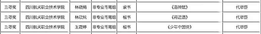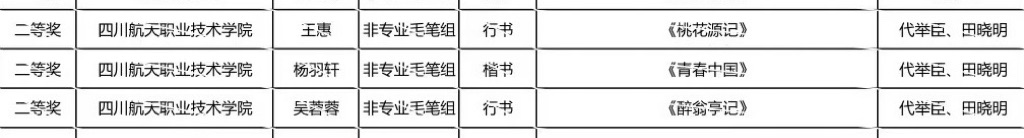 近日,由四川省教育厅、四川省语言文字工作委员会主办,四川民族学院承办的四川省大学生师范生“三笔字”书写能力竞赛结果揭晓。四川航天职业技术学院人文与管理学院学前教育专业学子凭借扎实的书写功底和良好的综合素养脱颖而出,在竞赛中喜获佳绩。