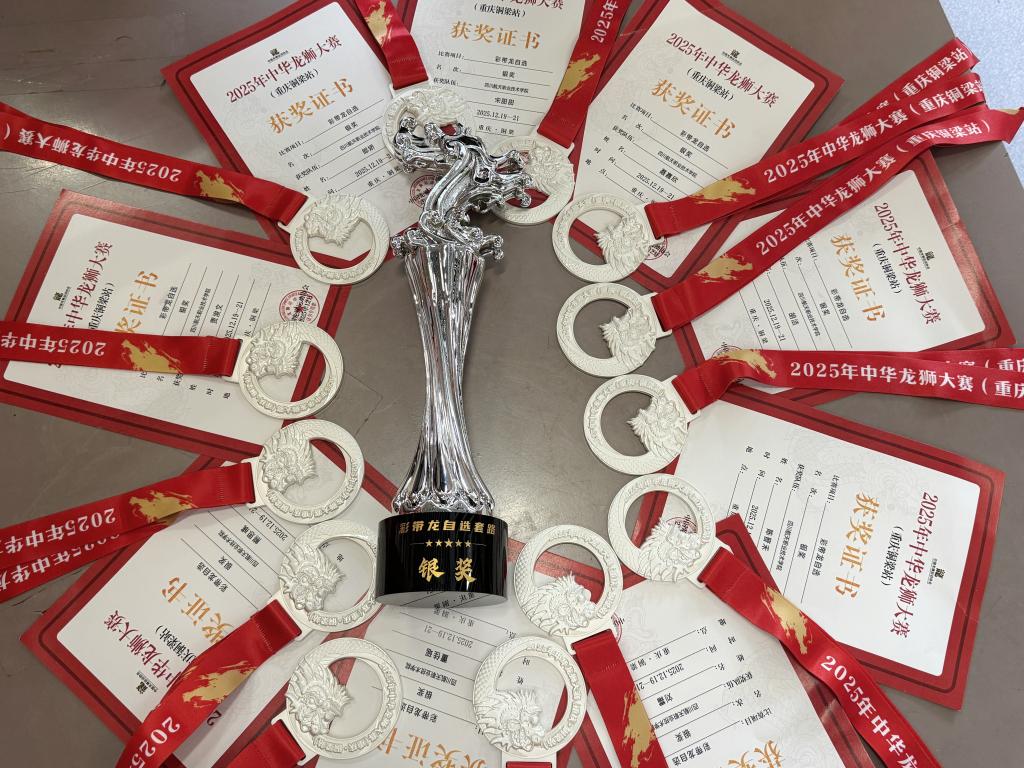 2025年12月21日,由中国龙狮运动协会主办的2025年中华龙狮大赛在重庆铜梁圆满落下帷幕。我校通识教育学院教师石景带领由人文与管理学院、计算机学院陈晋禾等12名同学组成的代表队参赛,凭借精湛的技艺与富有创意的编排,最终在彩带龙自选套路项目中摘得银奖。