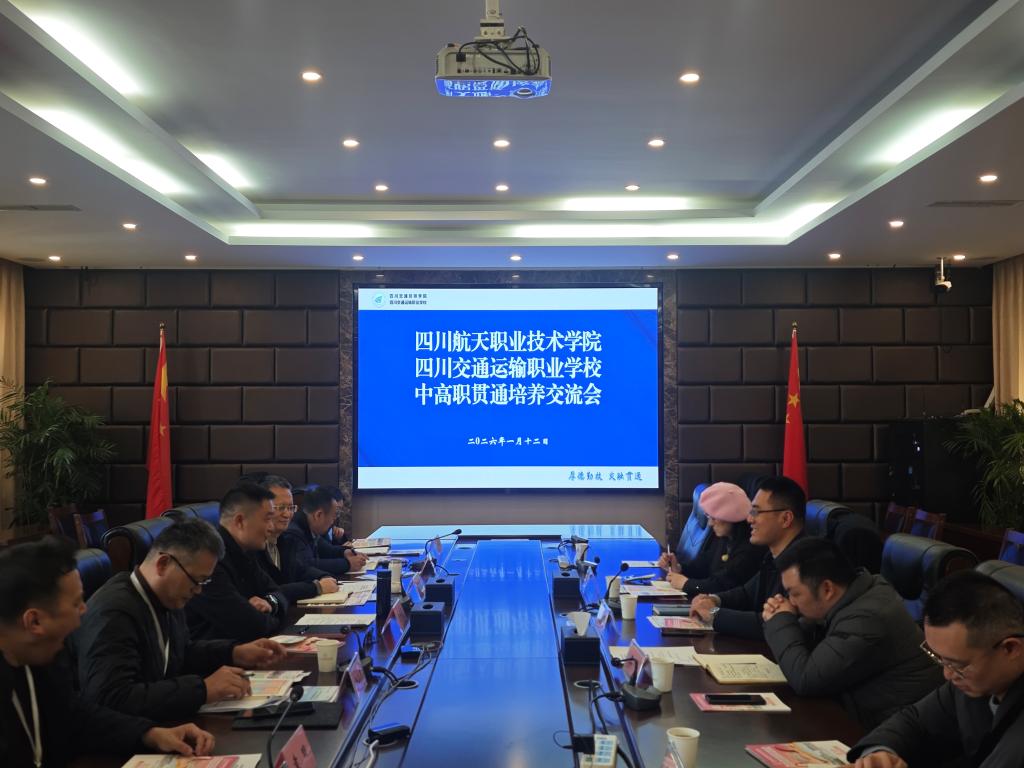 为深化中高职教育贯通培养机制,推动人才培养质量协同提升,1月12日,四川航天职业技术学院党委委员、副校长赵忠元带领招生处处长徐丽莉、智能工程学院副院长王舟、车辆工程学院副院长邹翔一行赴四川交通运输职业学校开展中高职衔接专题交流研讨,四川交通运输职业学校党委书记曾祥亮,党委委员、副校长刘新江及及相关部门负责人参加了研讨。