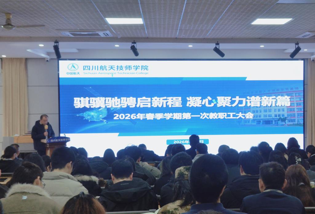骐骥启新,聚力笃行。为科学谋划学院年度重点任务,确保新学期各项工作有序推进、高效开局,3月2日,四川航天技师学院召开2026年春季学期开学工作会,技师学院全体教职工参会,会议由党支部副书记陈水松主持。