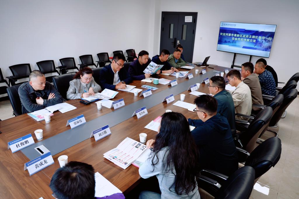 随后,徐红亮局长介绍了河源市高新区的产业布局、重点企业情况及人才需求。他指出,河源市高新区作为粤东西北地区首个国家级高新区,电子信息、精密制造等主导产业快速发展,对高素质技术技能人才需求旺盛,期待与学校在人才输送、实习实训、技术攻关等方面开展务实合作。