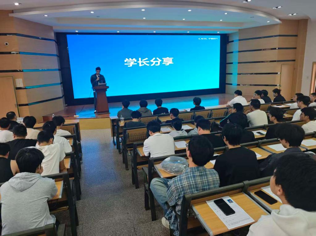 分享会上,陈太伟褪去毕业生的青涩,围绕“初入职场的适应与挑战”、“宁德时代的企业文化与核心竞争力”、等问题侃侃而谈。他结合入职后的具体经历,生动讲述了如何将在校所学理论知识与实际工作紧密结合,分享了自己快速融入团队、解决工作难题的心得体会。他特别强调了学科知识扎实、持续学习能力以及团队协作精神在宁德时代这类高科技企业中的重要性。