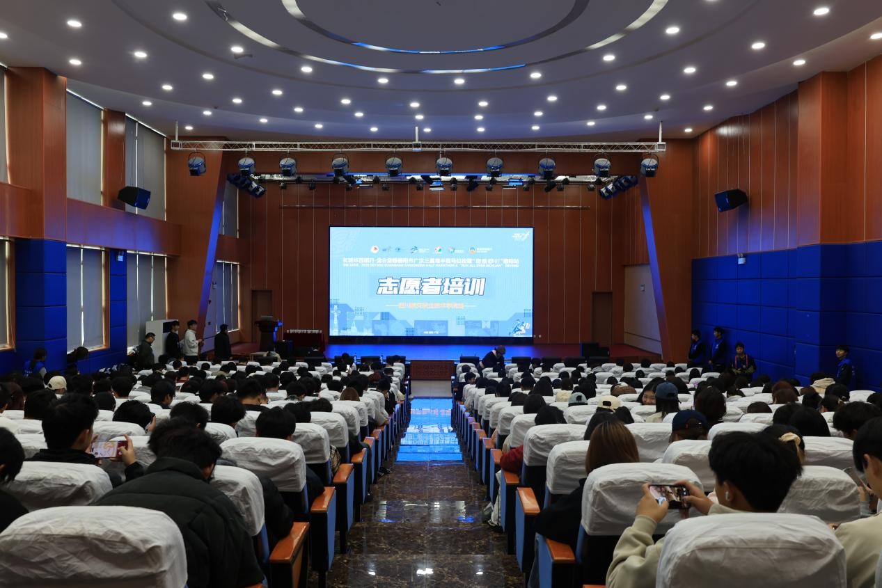 随后,赛事主办方代表温朝阳老师为志愿者们带来了全面而细致的专业培训。培训内容涵盖通识知识、服务礼仪及岗位职责三大核心板块,帮助同学们明确工作流程、提升服务技能,以最饱满的热情和最专业的姿态迎接四方跑者。