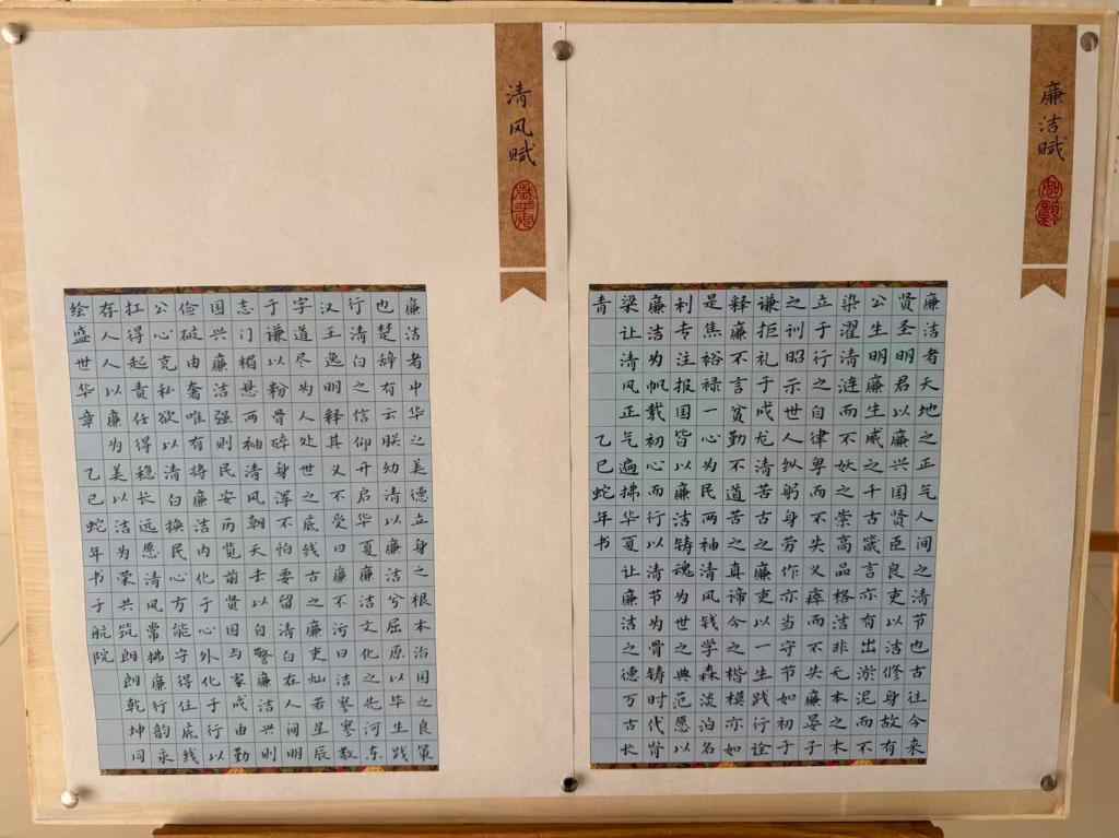 近日,由人文与管理学院主办、“大美人文”班组承办的廉洁文化作品展在文汇楼一楼大厅精彩呈现,也标志着为期2个月的创作征集活动圆满落幕。
