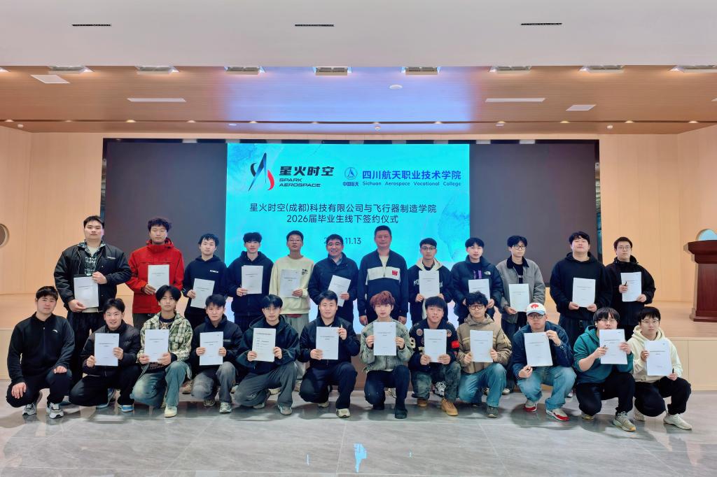 11月13日上午,飞行器制造学院与星火时空(成都)科技有限公司达成人才合作协议,双方在我校三星堆校区知行楼A区阶梯教室成功举行了2026届毕业生就业协议签订活动。飞行器制造学院党总支副书记刘琪与企业人力资源部招聘负责人黄晓永共同出席此次签约仪式。此次共计签约了27名毕业生,签约标志着西南地区商业航天企业与专业院校之间的人才培养与输送通道正式打通,为国家商业航天领域输送一批专业对口、技术过硬的高素质技能型人才。