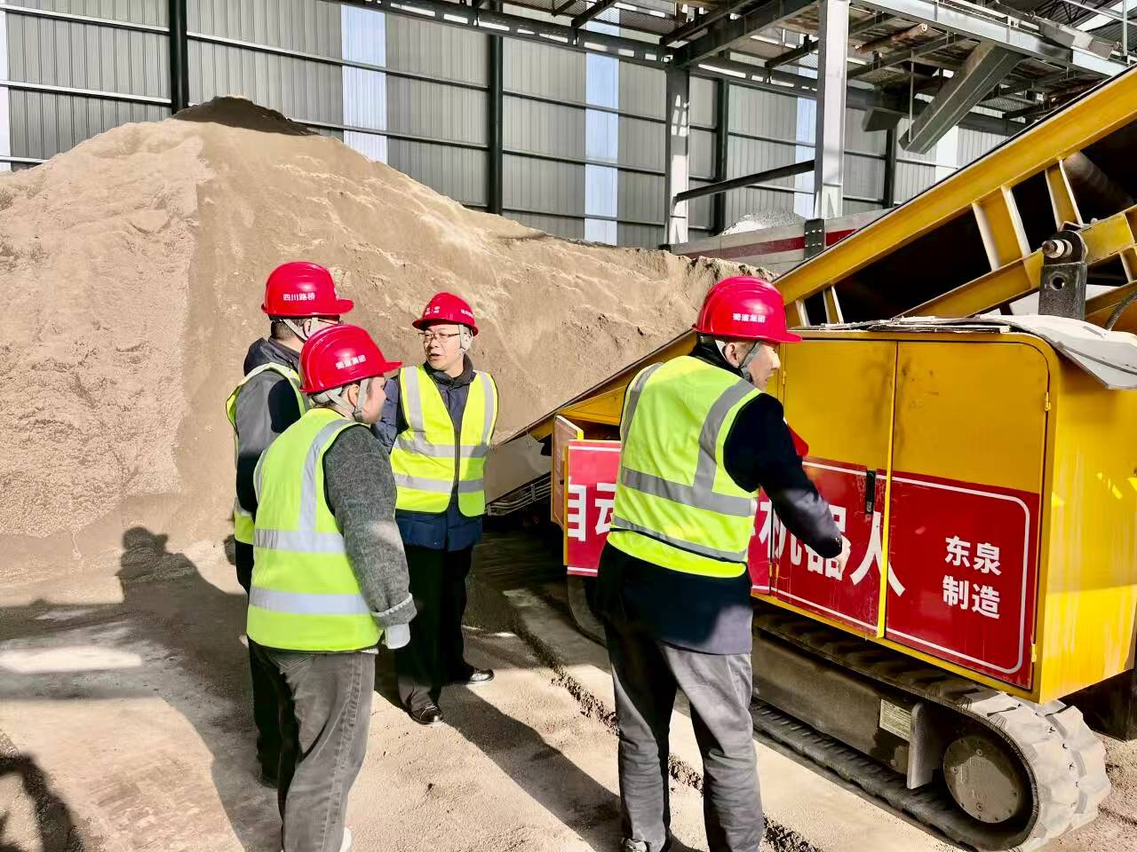 团队深入川交路桥智能搅拌站,系统考察从砂石分拣到搅拌出料的智能化全流程;随后走进东泉机械生产车间,重点观摩自动上料机器人的装配调试环节,并就设备可靠性提升、复杂工况适应等实际问题与技术人员展开现场研讨。座谈会上,川交路桥李总结合施工一线实际,提出智能化改造中的技术瓶颈与人才需求;东泉机械于总从研发与工程角度,分享了装备在材料选型、控制优化等方面面临的具体挑战。罗意表示,学院将推动教师“在产线上建课题、在生产线取案例”,实现教研与产业需求深度融合。通过务实交流,校企三方达成多项共识:一是建立常态化互访机制,推动企业技术骨干进校园;二是探索共建生产性实训基地,将行业最新标准融入教学;三是探索组建联合技术攻关小组,协同破解企业实际难题。