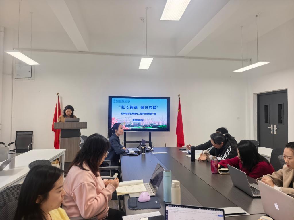 为深入贯彻党建引领业务发展理念,扎实推进通识教育核心课程高质量发展,落实立德树人根本任务,3月25日下午,通识教育学院“红心铸魂 通识启智”教师核心素养提升工程系列活动正式启幕。本次系列活动以党建为引领、以业务为抓手,聚焦教师核心素养提升,是学院坚持党建与业务深度融合的具体举措,首期培训特邀成都工贸职业技术学院常思老师,以“‘英’为思政,‘语’众不同”为主题开展专题培训,培训由学院院长李建群主持,学院英语教研室全体教师参会。