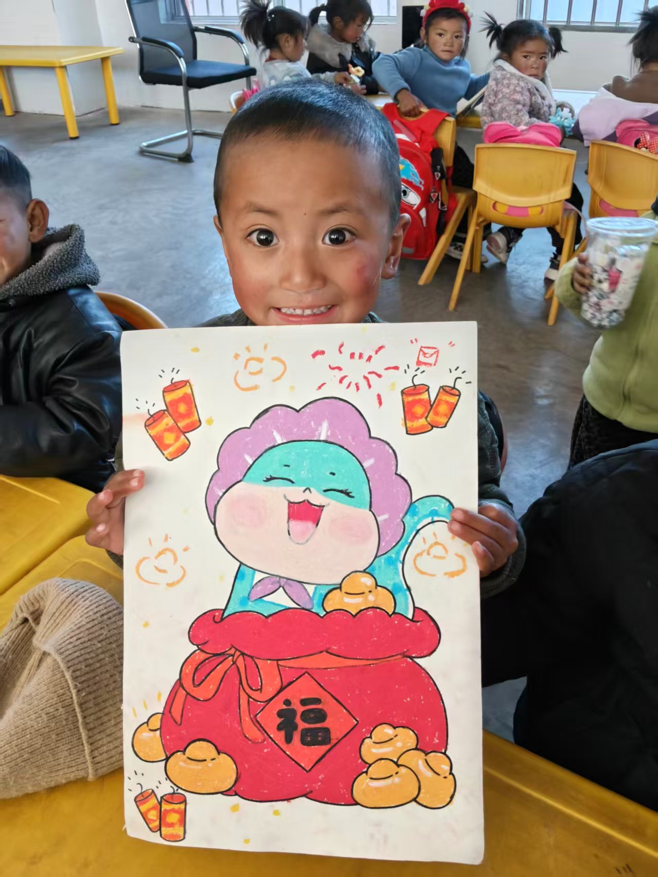 此次活动的顺利开展,离不开驻村干部沈永强老师的辛勤付出。他主动承担起组织协调、精准对接的重要职责,深入走访调研,了解乡村儿童的实际需求;精心策划发放环节,确保每一份礼物都能送达最需要的孩子手中;更以“第二课堂”的形式,向孩子们讲述作品背后的创作故事,传递“知识改变命运、奋斗成就未来”的正能量。