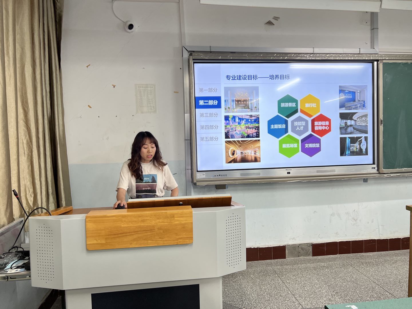 各专业负责人经过通盘谋划,先破后立,分享了对专业建设如何进一步落实及更好地为技术技能人才培养服务的认识与思考,亮点纷呈。各专业负责人的汇报极具前瞻性、思维性、指导性,观点新颖。电子信息工程技术专业负责人徐恒老师结合专业的优势与特点提出:建立活页式工作页;机电一体化技术专业负责人高春老师提出:增加一体化课程教育,改善教材陈旧与企业共同开发工学结合教材等。针对新成立的旅游服务与管理、现代物流及电子商务三个专业,宋应、张建、叶安安老师分别提出加强建设基础,打造优势特色,增强实践教学;积极更新教学实践内容,证通融合,鼓励学生考取物流服务师、导游证等技能等级证书;把握主动服务数字技术催生的新产业,新业态,新模式,与企业有机联动,相互支撑,相映成辉。最后,各位评委老师肯定了老师们汇报,并进行了点评。