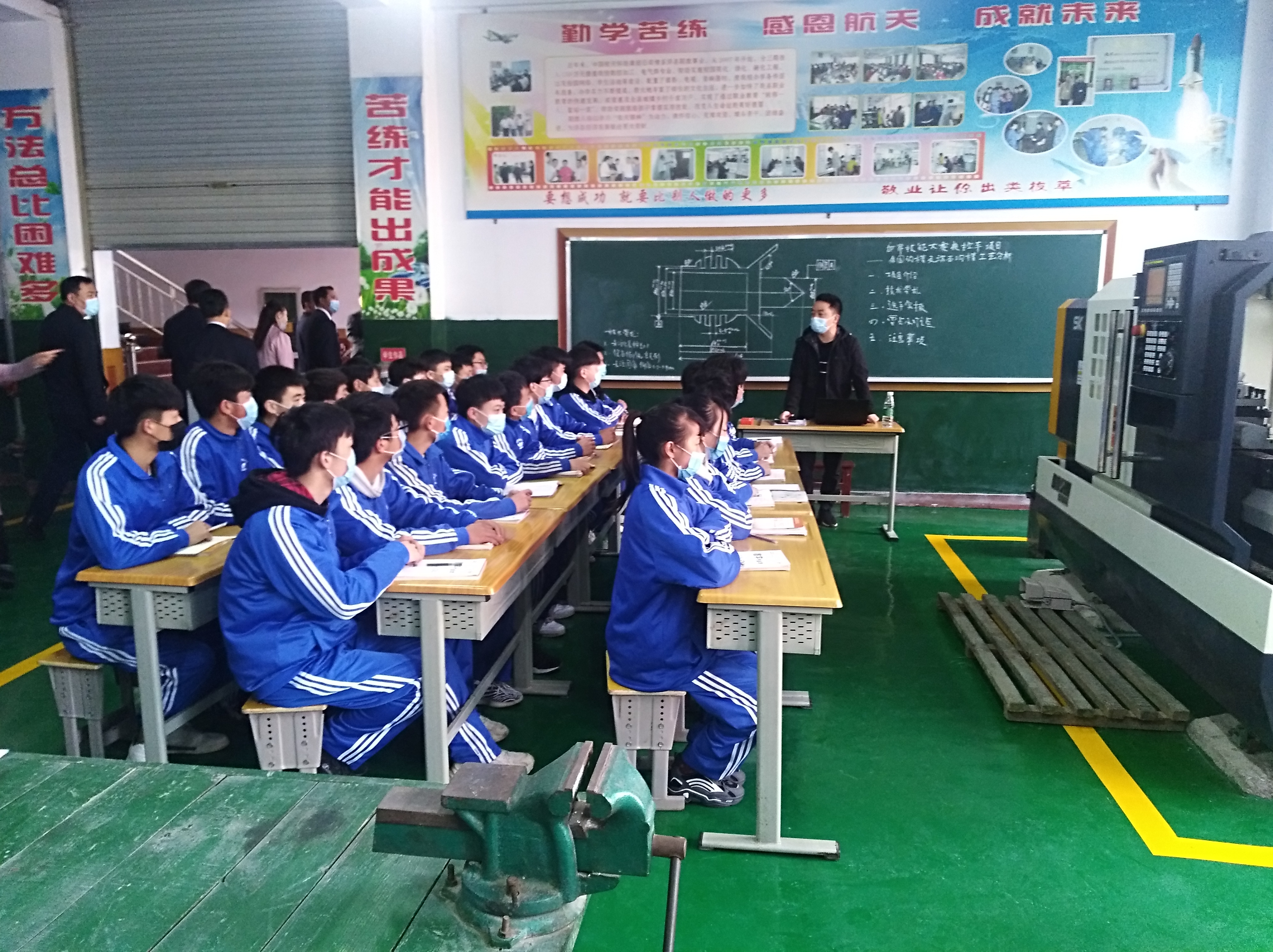 刘院长参观了洋县职教中心校园、汽车实训室、工业机器人实训室,观看了无人机表演,并与师生一起参与了纪念中国航天日的活动。他表示,双方在将在人才培养方案、课程改革、师资送教上门与跟岗学习、学生赛前短训和来校提升、学生学历提升与就业推荐等几方面深度合作,共同发展进步。
