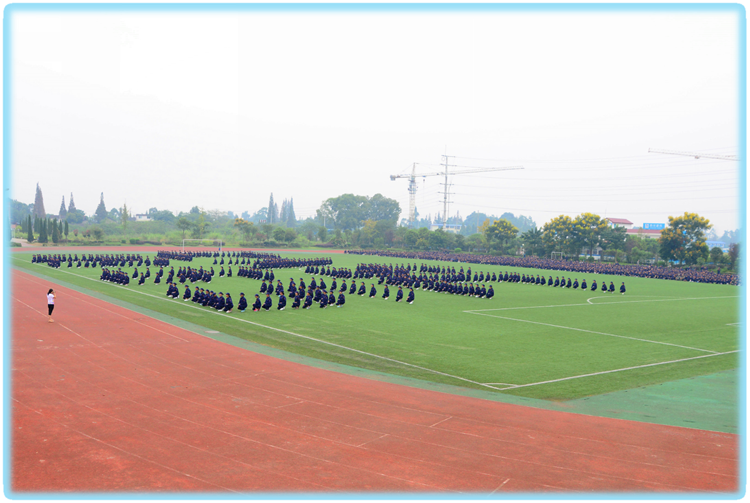 现在我们看到的是由女子800人组成的图形表演团队。女子方队依次变化组合成形状CASC 1965、51、HOPE2016(CASC是中国航天的英文标识,1965是四川航天职业技术学院成立的时间; 51指的是学校建校51周年; HOPE2016,指的是2016充满希望,在新的学期里,奋发向上。)