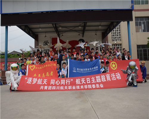 你说我美吗? 小航我呀,总喜欢在特别的日子里搞点小事情 哼哼,接下来.... 容我想想~~~ 咳咳咳,还是直接进入主题吧! 今天,迎来了我们第三个中国航天日! 身为航天学子的你,是否知道“中国航天日”的意义呢? 中国航天日,是为了纪念中国航天事业成就,发扬中国航天精神而计划设立的一个纪念日。设立“中国航天日”,就是要铭记历史、传承精神,激发全民尤其是青少年崇尚科学、探索未知、敢于创新的热情。 在这个特殊的日子里,四川航天职业技术学院团委学生会、青年志愿者协会和航模飞行协会的小伙伴们开展了自己对于航天日的特别活动。 年轻真好,手中的相机能拍出烈日骄阳,拍不出我们对生活的热望。 1“航天日”主题活动之以航天精神为圆 提前到达新平小学眼巴巴的等着小朋友下课的他们,像极了哥哥姐姐等自家娃娃。 我们的宇航员盆友顶着36℃左右的高温依旧坚持着,只为给小朋友展示作为一名航天人最好的精神面貌。 怀着对“航天日”的崇高敬意,小朋友们也一改往日的调皮捣蛋,你有见过这么听话的他们吗?是不是想起自己的弟弟妹妹就恨不得拎起来暴揍一顿! 我们的校外活动正式开始喽 睁大眼睛好好看,航哥可是要提问的 回答不上来罚你一包辣条,很辣很辣的那种 都说了要提问你不信,准备好辣条了吗 航天知识有奖问答环节来啦 交出辣条咱还是朋友 看这积极劲儿,多稀罕你的辣条吗 说真的热爱学习的小朋友最可爱 小航偏就爱这得瑟样儿,各位看官你们觉得呢 是是是,你们最厉害,飞机送给你! 从现在起,你也是有自己的私人飞机的人了呀 各种类型的活动,完全吸引了小可爱的注意力,也不管它烈日当空,就是爱玩耍——我就是自由自在的一个人~~~ 以小航傲娇的性格,你应该清楚事情远没有这么简单, 非常、非常的不同寻常! 2“航天日”主题活动之以青年教育为轴 (宇航员小哥哥再次现身,跟小朋友们一起参观火箭模型) 视觉盛宴之后,就到“我们”大展身手的时候了 现在的小朋友胜负欲真不是一般的强诶 看看,连场外求助都用上啦 我们的丰富多彩的航天日活动有没有很有爱呢? 随着活动的结束,小航也颇有感触,作为航天学子,愿载人航天精神特别能吃苦、特别能战斗、特别能攻关、特别能奉献的意志在每个人身上延续、代代传承!