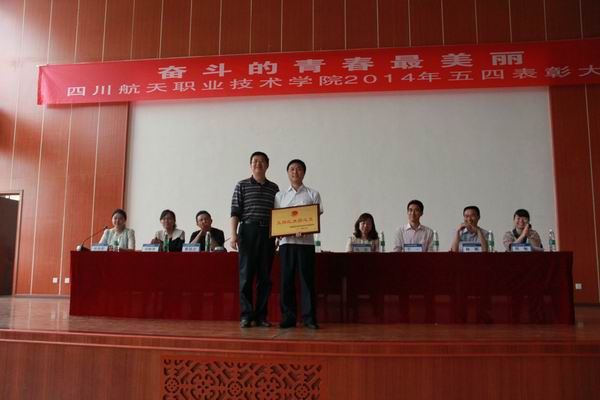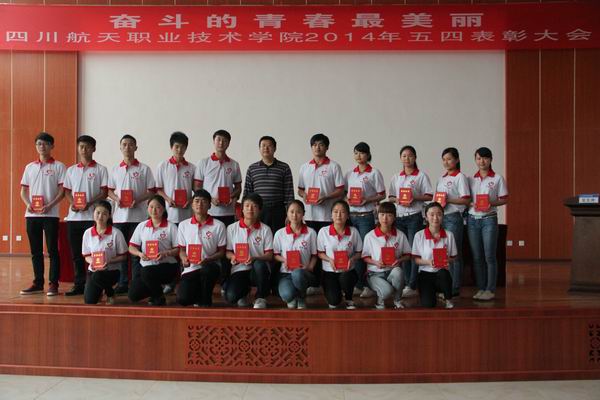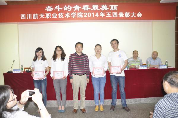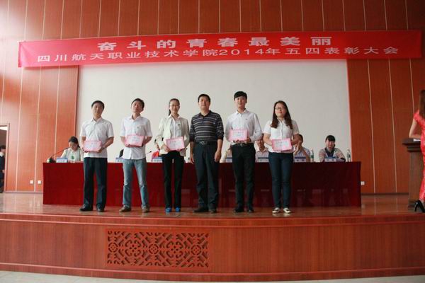 5月8日,四川航天职业技术学院2013-2014年度五四表彰大会在龙泉校区隆重举行。学院院长刘家騑、学院书记袁玫、副院长陈宇、李晓敏以及200余名团员青年参加了表彰大会。 大会在庄严的国歌中拉开了帷幕,袁玫书记发表讲话,高度肯定了过去一年各级团学组织取得的成绩,希望学生们继承和发扬五四光荣传统,弘扬五四精神,号召大家树立正确的人生观、世界观,勇于承担责任、坚持学习,为学院改革、发展贡献自己的青春、智慧和力量。会上,学院领导宣读了“关于表彰2013-2014年度先进团支部、优秀团干、优秀团员、优秀青年志愿者的决定”,表彰这些在过去一年里为学院共青团工作做出卓越贡献的先进集体和个人。刘家騑院长代表学院党委和行政向广大青年团员致以诚挚的问候,向受表彰的先进集体和个人表示衷心的祝贺,兵向团员青年提出了三点希望:一、共青团员必须铭记使命光荣、责任重大、前景光明二 、牢记使命,不负重托,不辱使命。三、要争做学习的标兵、创业的典范、技能的先锋。 长期以来,川职院各级团组织围绕学院的中心工作,发挥了共青团的先锋作用和青年的骨干作用。全体团员青年和各级团干部工作积极性高,主动性强,一直保持着昂扬向上的精神状态,团组织焕发蓬勃的生机和活力。