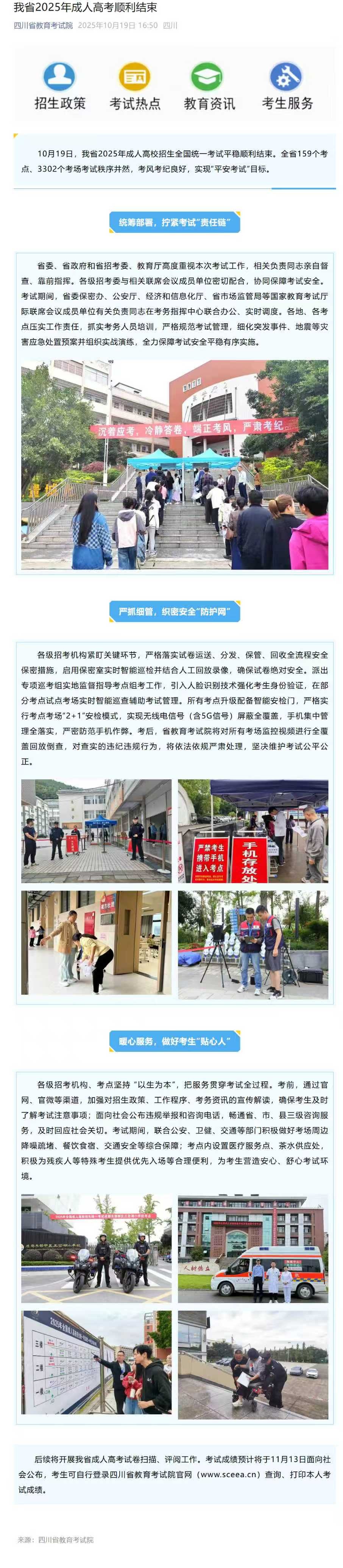 转载四川省教育考试院-我省2025年成人高考顺利结束